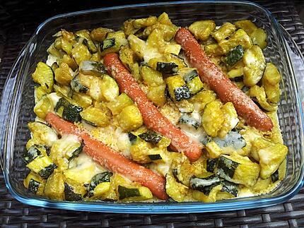 Recette De Gratin De Courgettes Au Curry A La Semoule Et Knackis Recette Courgettes Knacki