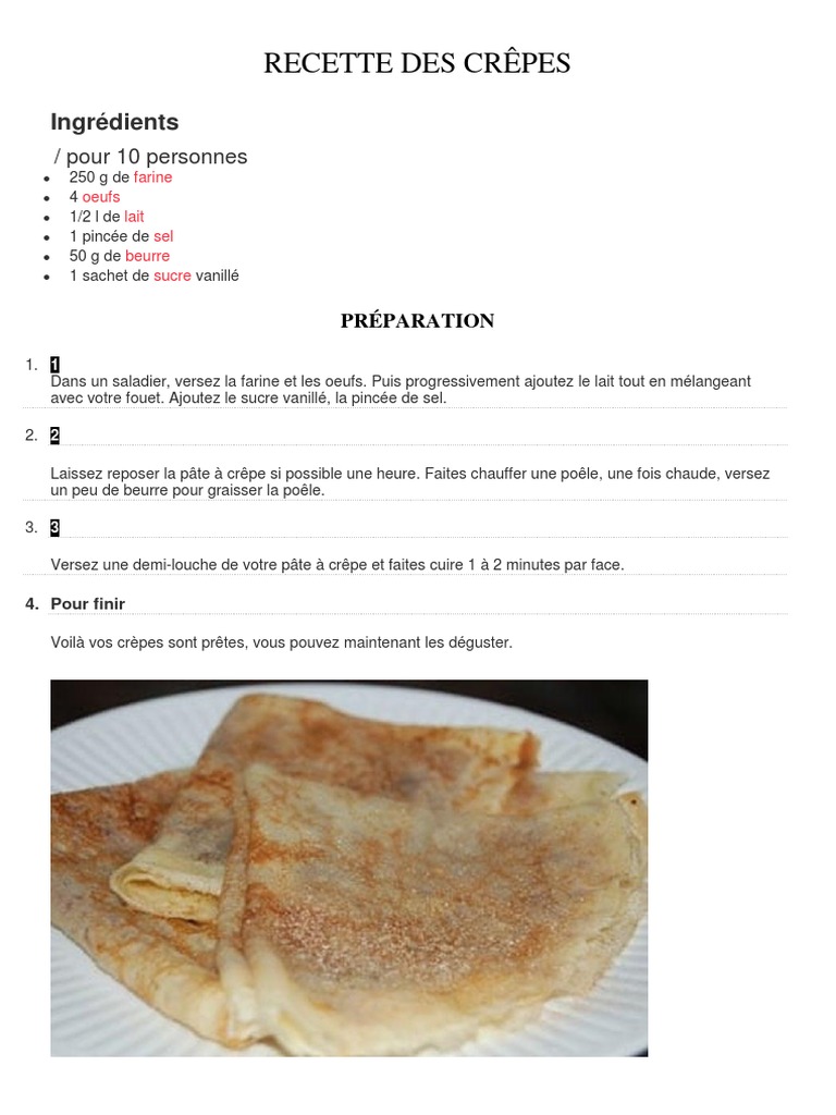 Recettes crepe 4 personnes. Decouvrez cette recette de crepes tres rapide a preparer. Filtrer les resultats pate a crepes pour 4 personnes 10516 resultats. Ajoutez le sucre vanille et le sel.